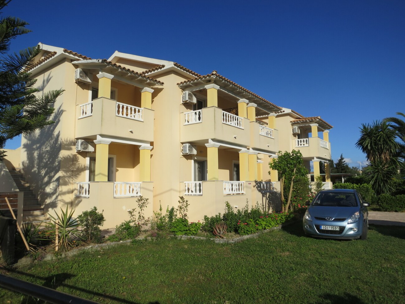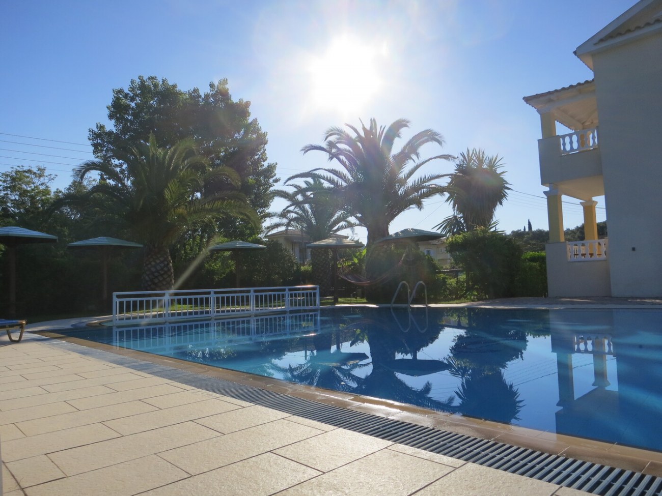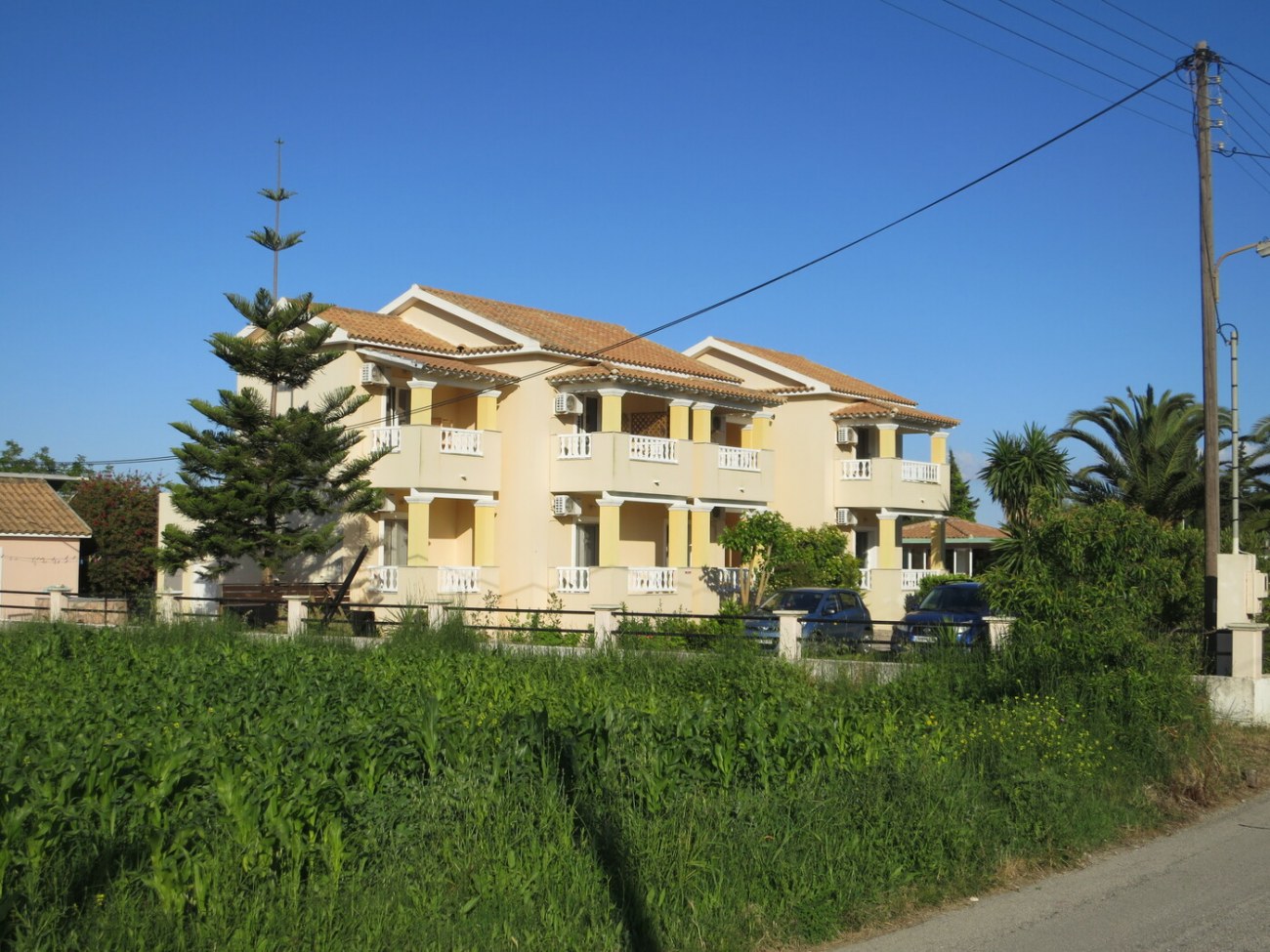 Das Hauptgebäude erstreckt sich über zwei Etagen mit jeweils zwei Ein-Zimmer-Apartments und einem Studio pro Boden. Insgesamt gibt es vier Ein-Zimmer-Apartments mit je 40 m² und zwei Studios mit je 33 m². Alle Apartments sind beheizt und klimatisiert. Das Anwesen liegt auf einem 1305 m² großen Grundstück direkt an der Hauptstraße von Arillas, etwa 1 km vom Strand entfernt. Neben dem Hauptgebäude befindet sich ein 90 m² großer Swimmingpool, angrenzend daran ein 78 m² großer überdachter Bereich mit Poolbar und Lounge Gut ein geräumiges Büro. Ein praktischer Abstellraum von 15 m² ist ebenfalls vorhanden. Alle Gebäude sind genehmigt. Der Komplex gelegen in sehr zentral in Arillas, in unmittelbarer Nähe eines Minimarkts und einer Bäckerei. Er bietet großes Potenzial, sowohl als Ferienimmobilie als auch als Ort für Retreats.