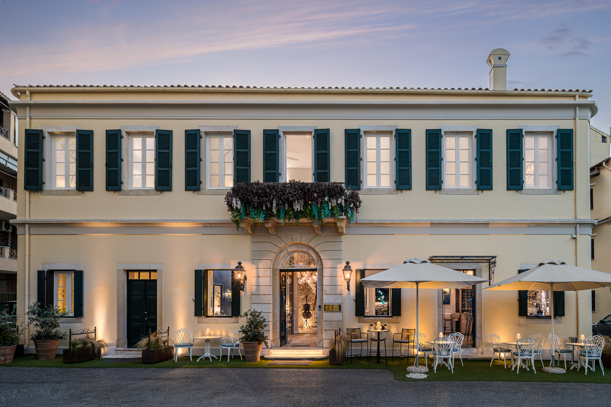 Idéalement située à deux pas de la vieille ville de Corfou, classée au patrimoine mondial de l’UNESCO, et de son littoral étincelant, cette villa offre une alliance parfaite entre emplacement privilégié et tranquillité absolue. Son atout majeur réside dans son jardin clos et privé, un véritable havre de paix, rare et précieux dans ce cadre central. Ce sanctuaire serein, avec ses espaces extérieurs magnifiquement aménagés, offre un refuge exclusif pour la détente et des réceptions raffinées en plein air.