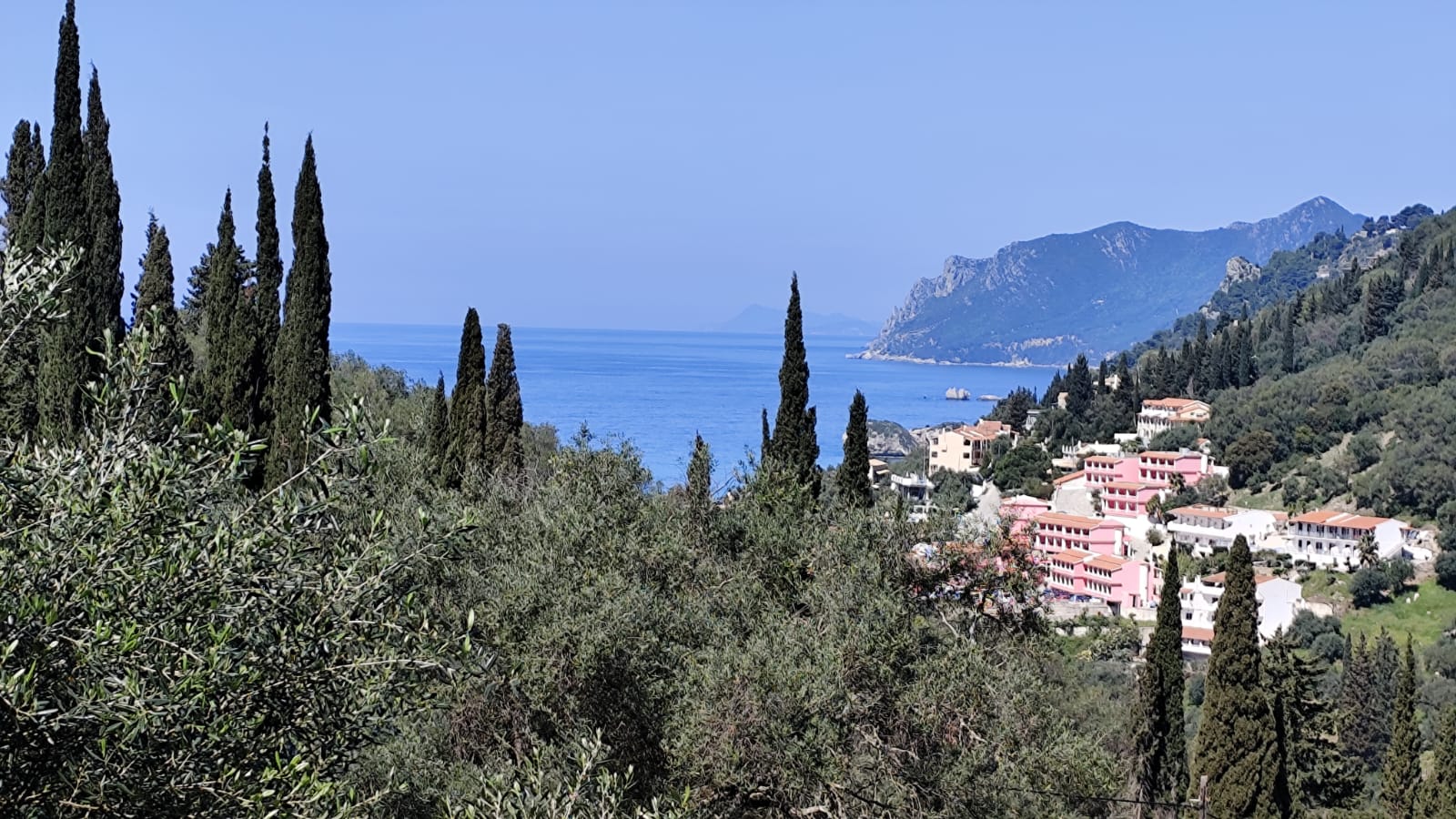 Le terrain, en incliné, offre une vue imprenable sur la mer Ionienne et le littoral environnant. Sa position surélevée en fait un choix idéal pour ceux qui recherchent intimité, beauté naturelle et couchers de soleil à couper le souffle, à proximité immédiate de la plage de sable fin d’Agios Gordios.