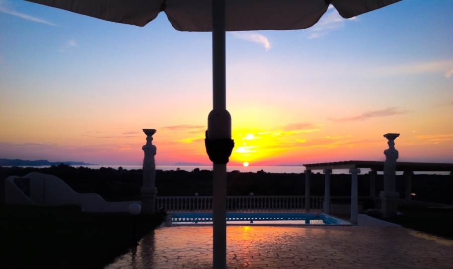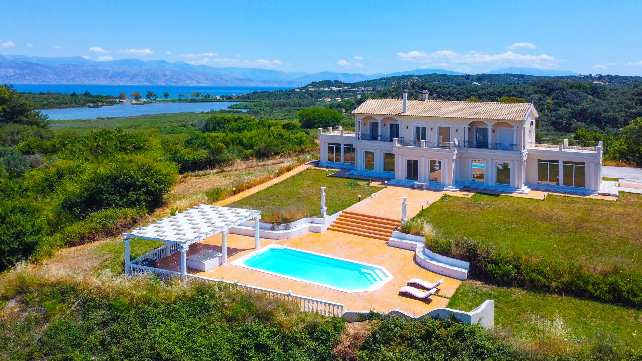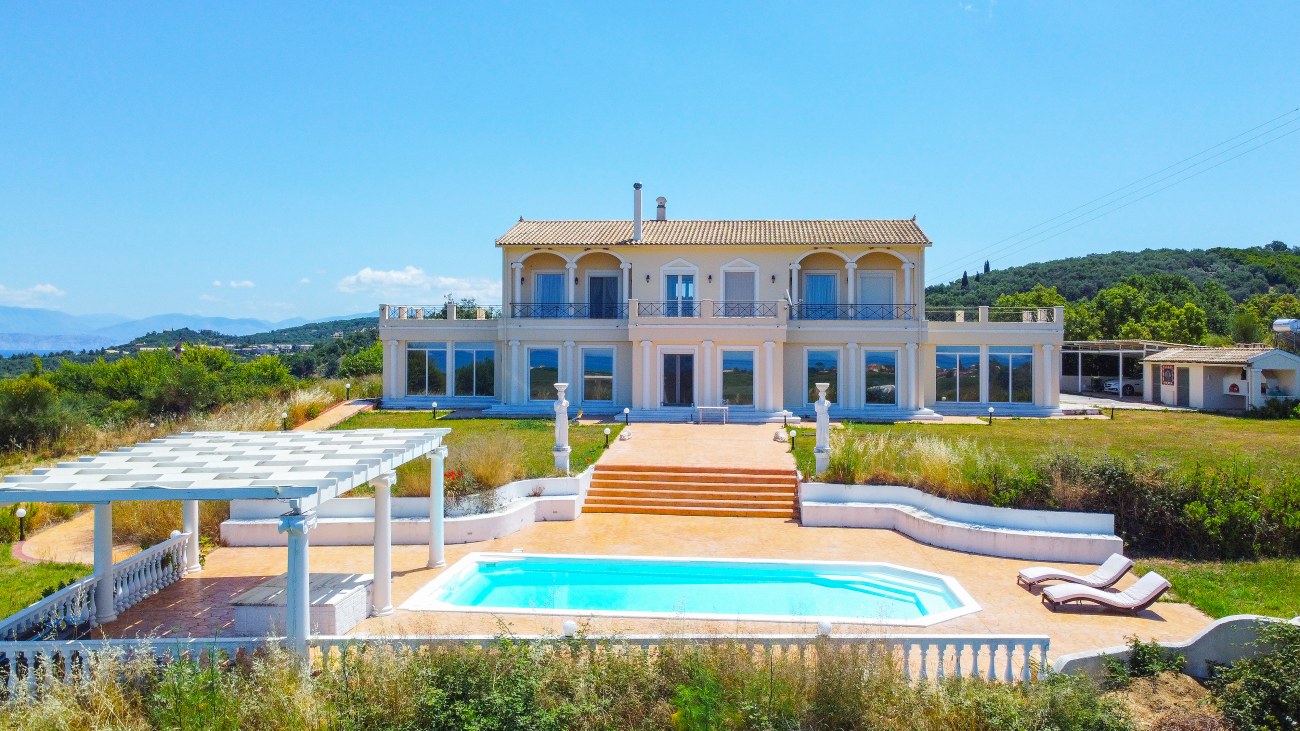 The outdoor area includes landscaped surroundings and a swimming pool, offering a pleasant setting for outdoor living. This property combines generous indoor and outdoor areas, making it ideal as a comfortable family home or holiday residence in one of North Corfu’s most attractive coastal areas.