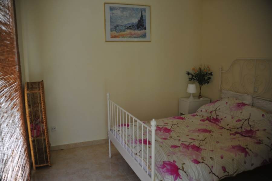 The ground floor includes a large living room, dining area, and kitchen with direct access to the outdoor spaces. On this level, there is also the main bedroom, a separate WC, and an additional room currently used as a gym. The first floor features four bedrooms, each with its own ensuite bathroom.