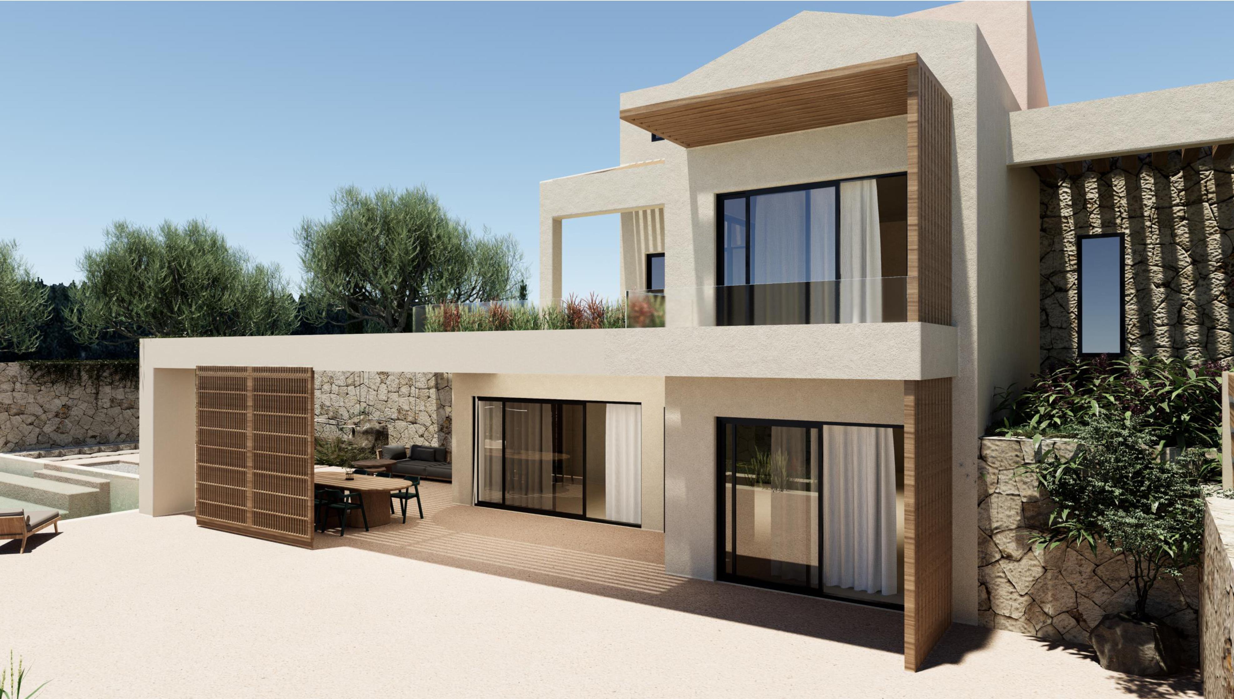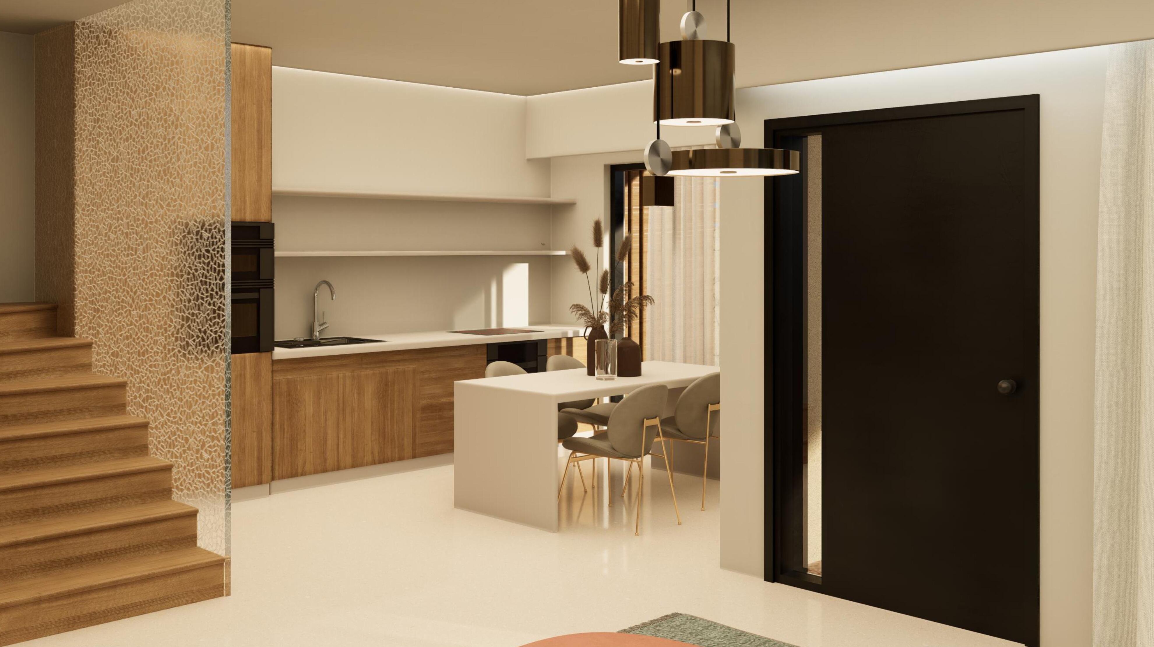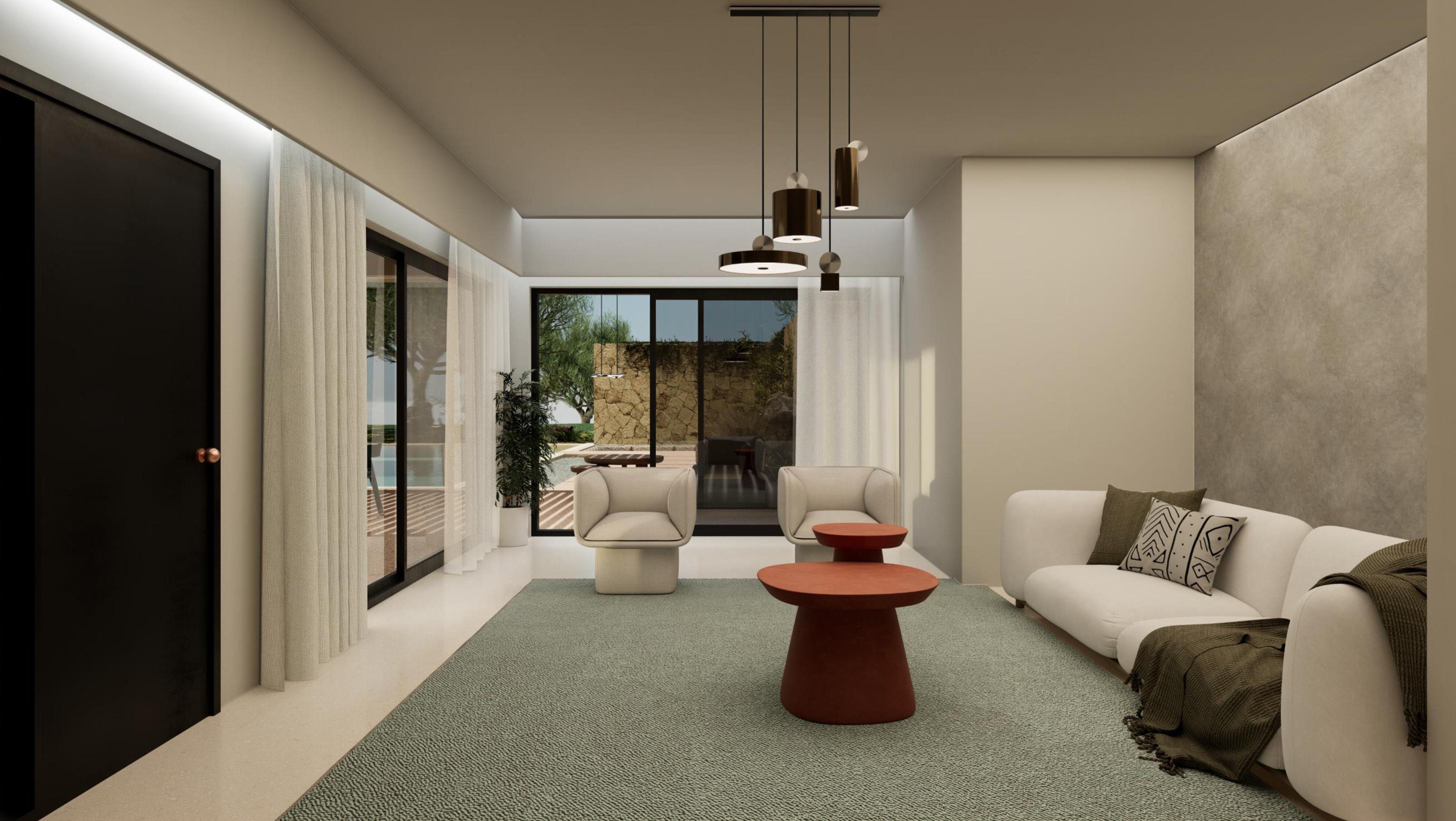 The villa spans two levels and features a private swimming pool, a dedicated parking area, and beautifully landscaped outdoor spaces for relaxation. The location is exceptional, just a short distance from the airport, the vibrant town center, and the island’s crystal-clear beaches.