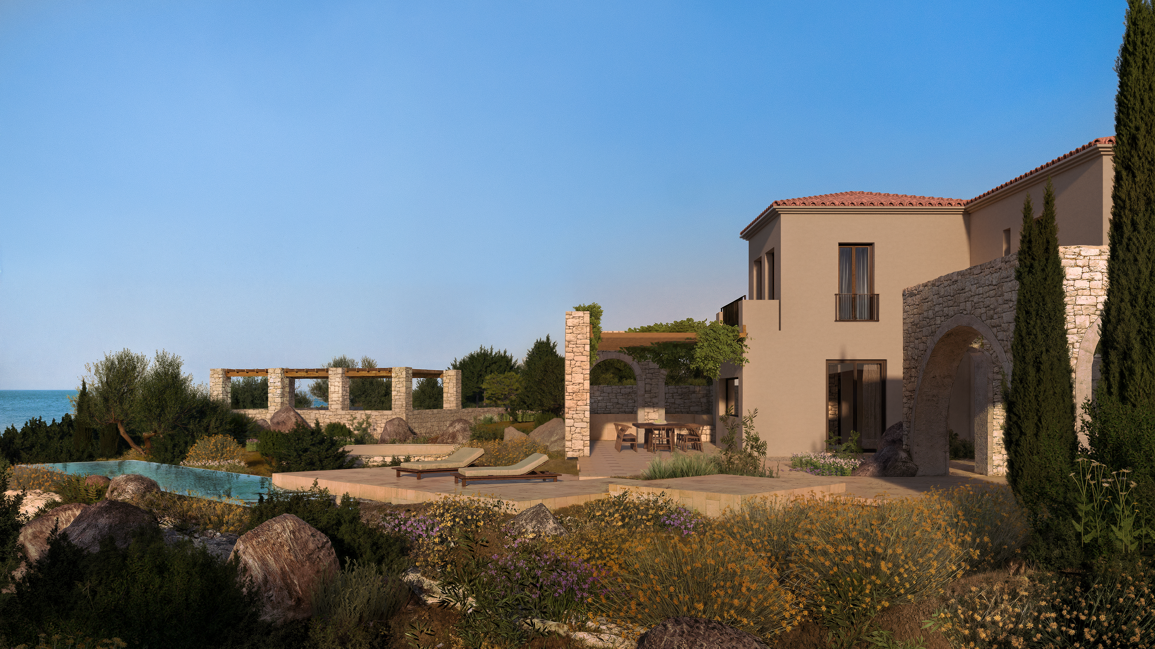Inspired by the island’s rich cultural heritage, the villa reflects the harmonious blend of Greek authenticity and Italian elegance, a legacy of Paxos’ historic ties to Venetian influence. The architecture captures this unique character with refined Mediterranean simplicity, combining timeless materials with understated elegance.