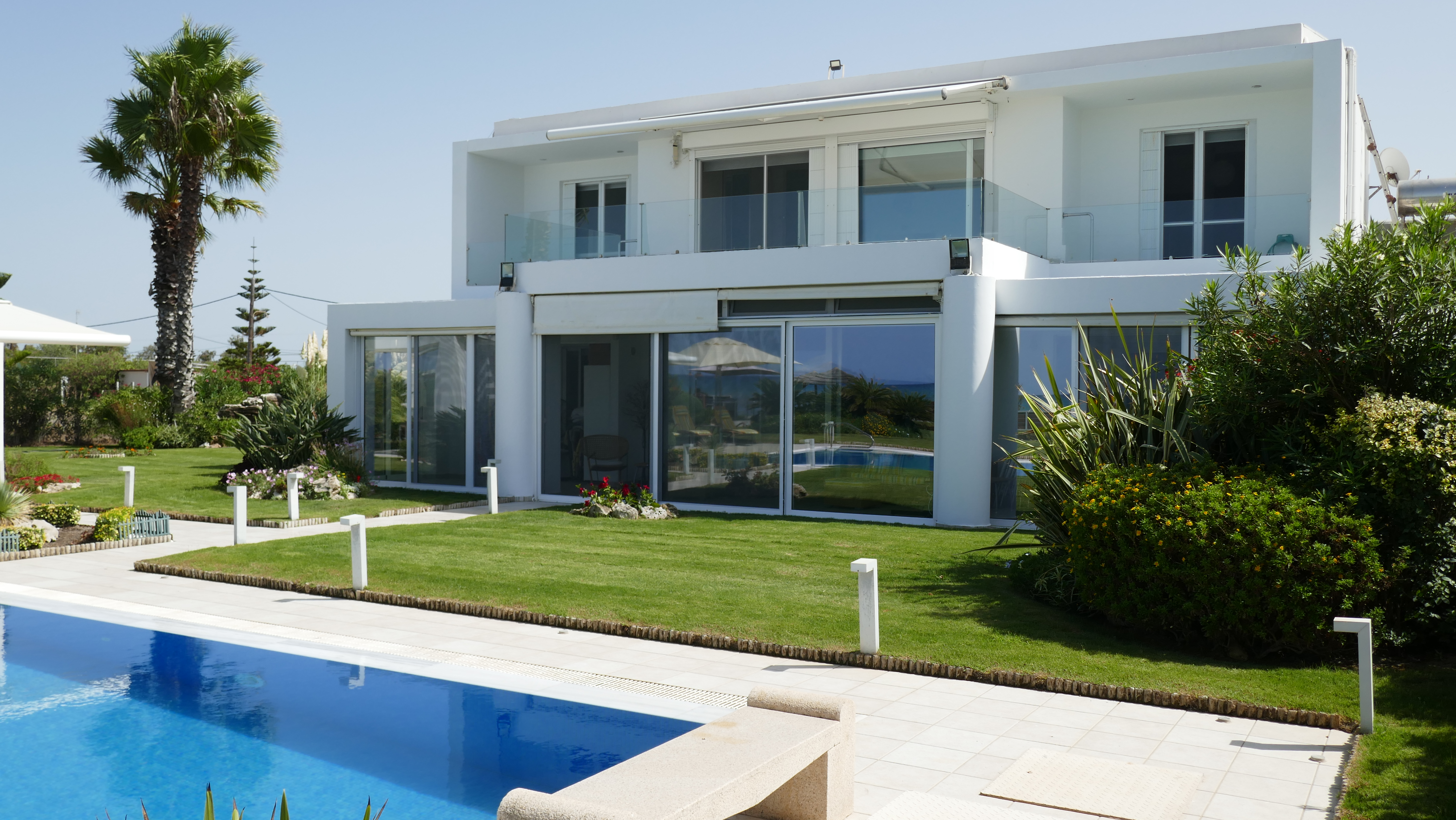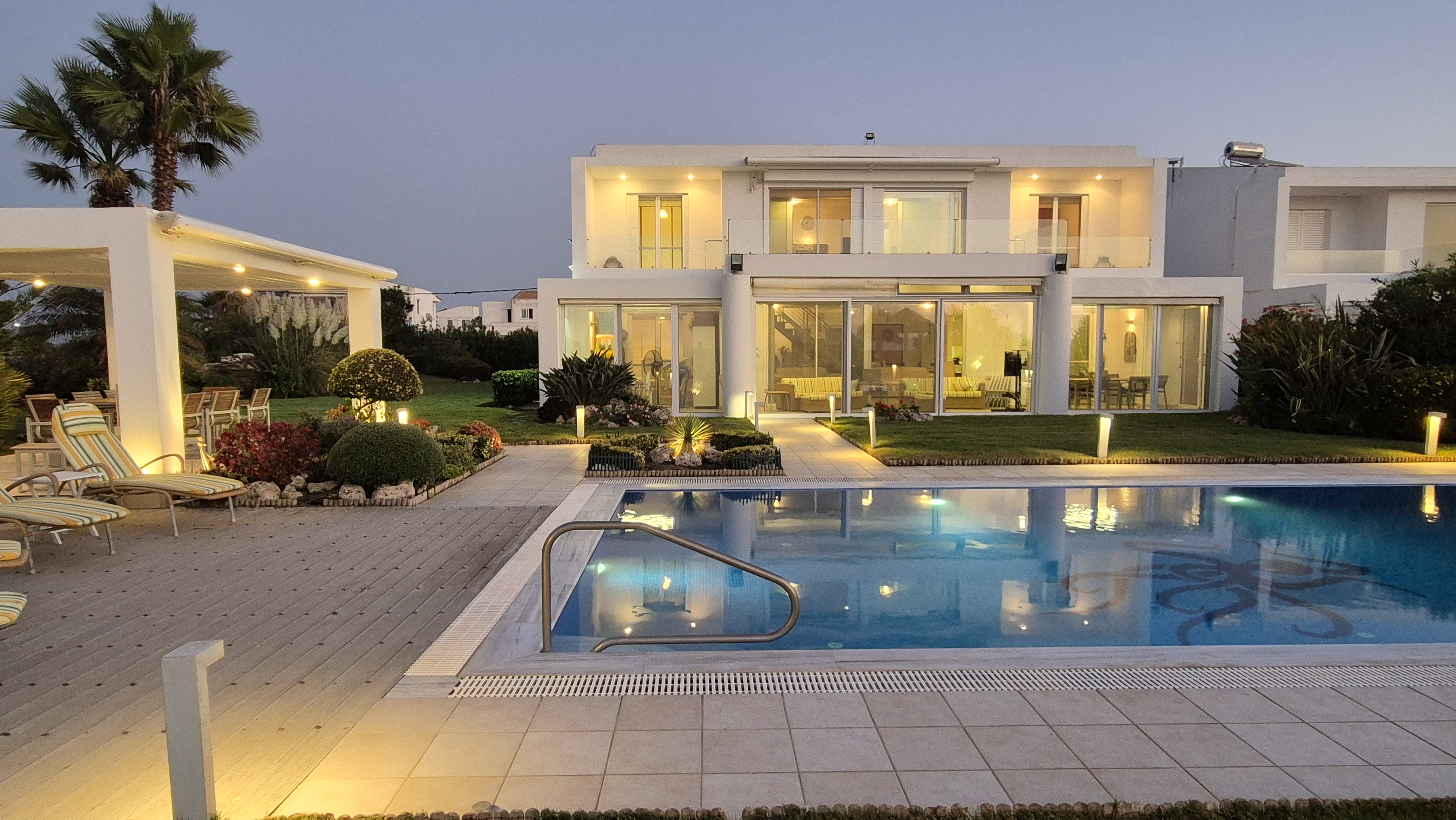 We present this exceptional beachfront residence set directly on the Ionian Sea, offering an elevated lifestyle in a privileged coastal location on the Kyllini Peninsula. The villa’s contemporary architecture, inspired by Greece’s iconic white design, blends harmoniously into the flat coastal landscape.