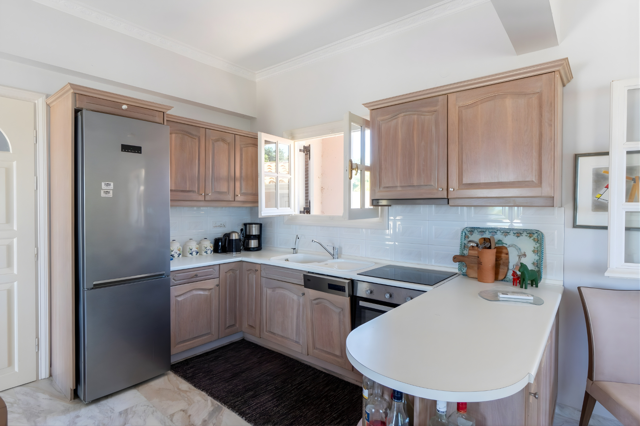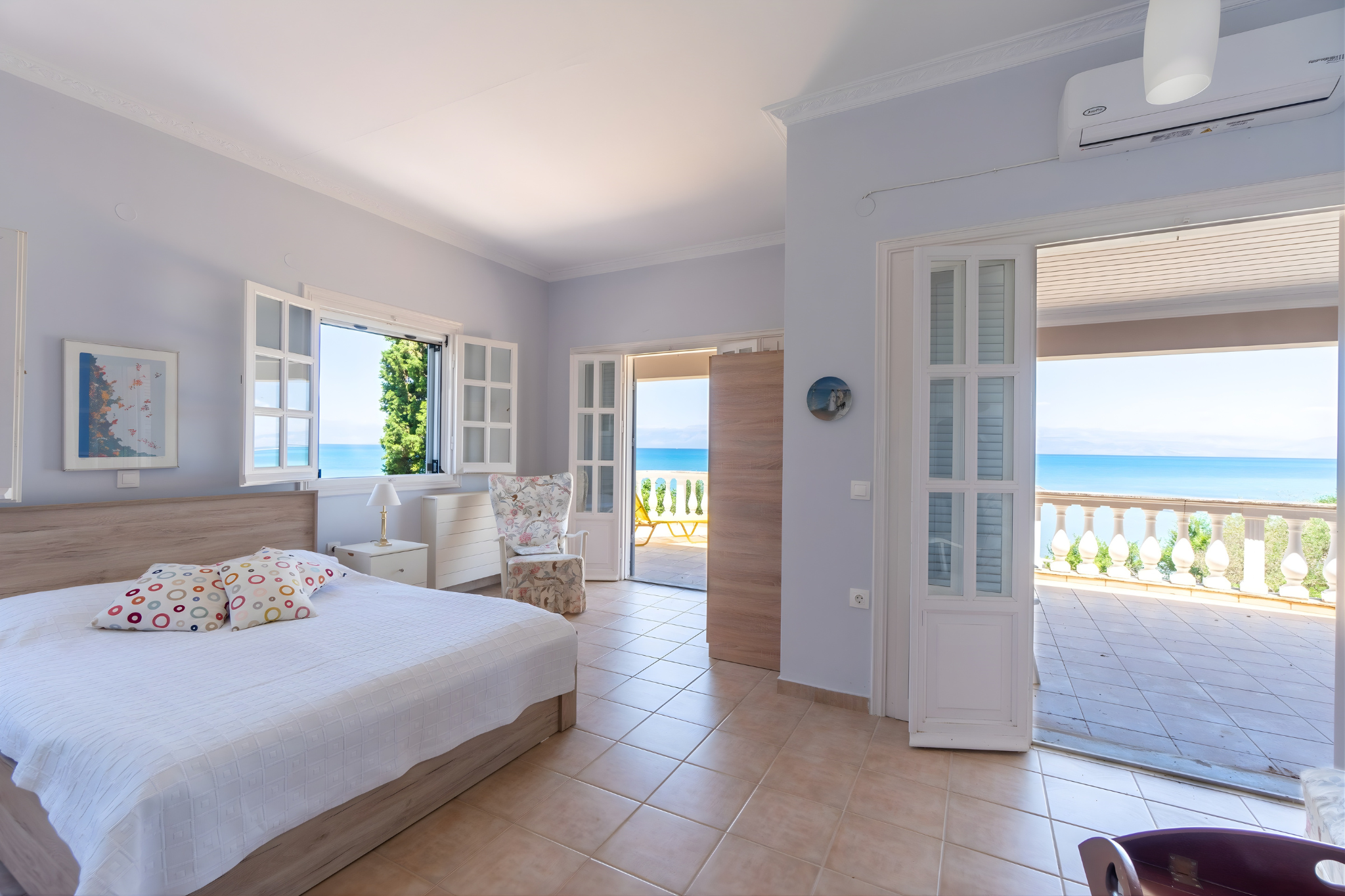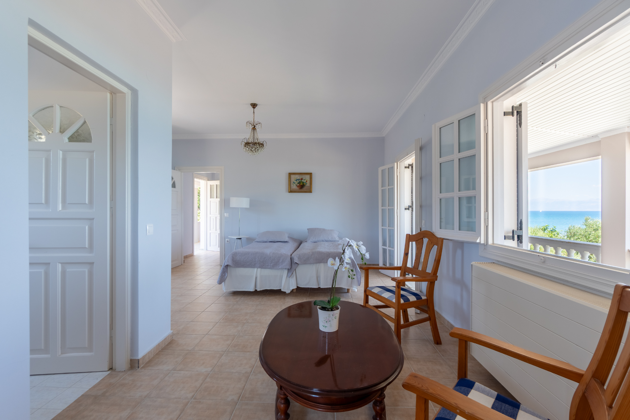 In the morning, sunlight fills the rooms with warmth as you draw back the curtains and take in the endless blue of the sea. Your coffee tastes different here, especially when enjoyed with this stunning view. And nothing compares to a barefoot morning walk along the shore.