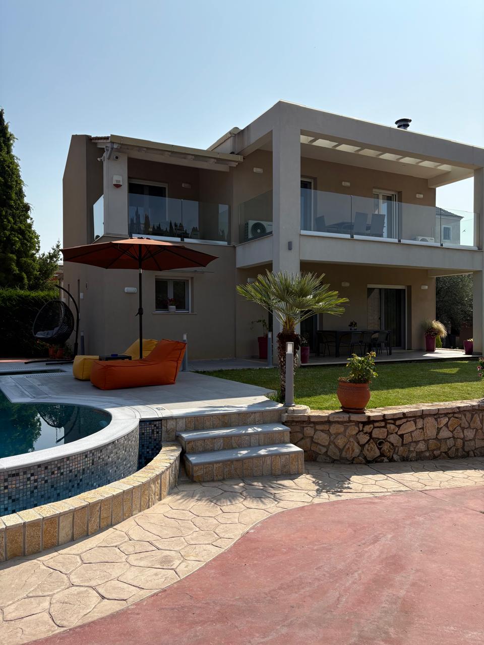 Set within a serene 2,408 sq.m. plot surrounded by lush trees and olive groves, this stunning 203 sq.m. villa offers complete privacy and tranquility.