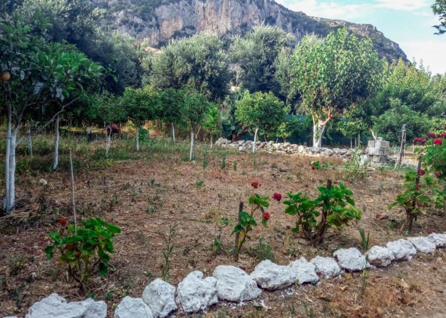 Участок площадью 5,227 кв.м. огорожен и очень ухожен. Два входа и засажен оливами и фруктовыми деревьями. Здание площадью 155 кв.м. состоит из двух квартир с одной спальней, которые требуют завершения и двух готовых студий.Вокруг здания — террасы и двор. Напротив находится старое каменное здание площадью 25 кв.м., которое нуждается в ремонте и может быть преобразовано в дом.